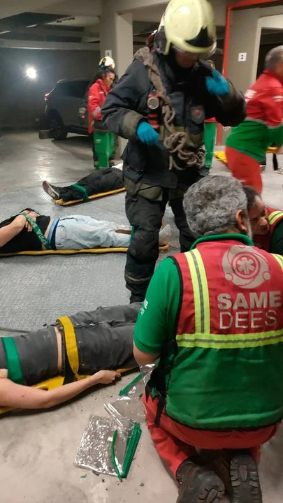 El ascensor se desplomó luego de ser abordado en el séptimo piso, quedando seis mujeres y tres hombres atrapados, hasta que Bomberos los rescató y luego el SAME los trasladó a distintos centros asistenciales públicos.