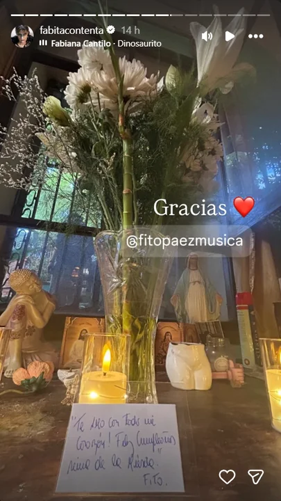 El músico Fito Páez, con quien compartió un intenso romance de seis años durante su juventud, le hizo llegar un presente a Cantilo en su día especial: un ramo de flores blancas con una sentida dedicatoria.