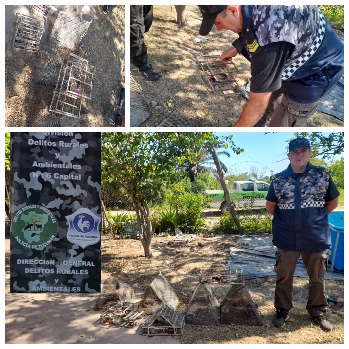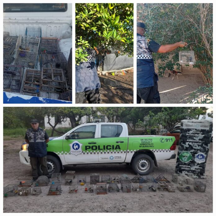 El primer procedimiento fue realizado en la localidad de Los Ralos en la tarde de este martes. Un equipo de la División Especial que patrullaba la zona observó en el interior de un domicilio las jaulas con las aves. Allí, llamaron al propietario a quien le explicaron que incurría en una falta legal al mantener en cautiverio este tipo de animales, tal es así que, esta persona procedió a hacer entrega voluntaria de los mismos, como así también, de las tramperas y jaulas. Al contabilizar las aves detectaron que mantenía enjauladas seis cardenales, un rey del bosque, tres pepiteros, diez Reyna mora, un chilenito, un piquito de oro, un cabecita negra, dos corbatitas y cinco jilgueros. En cuanto a las tramperas resultaron ser un total de 18 y doce jaulas.