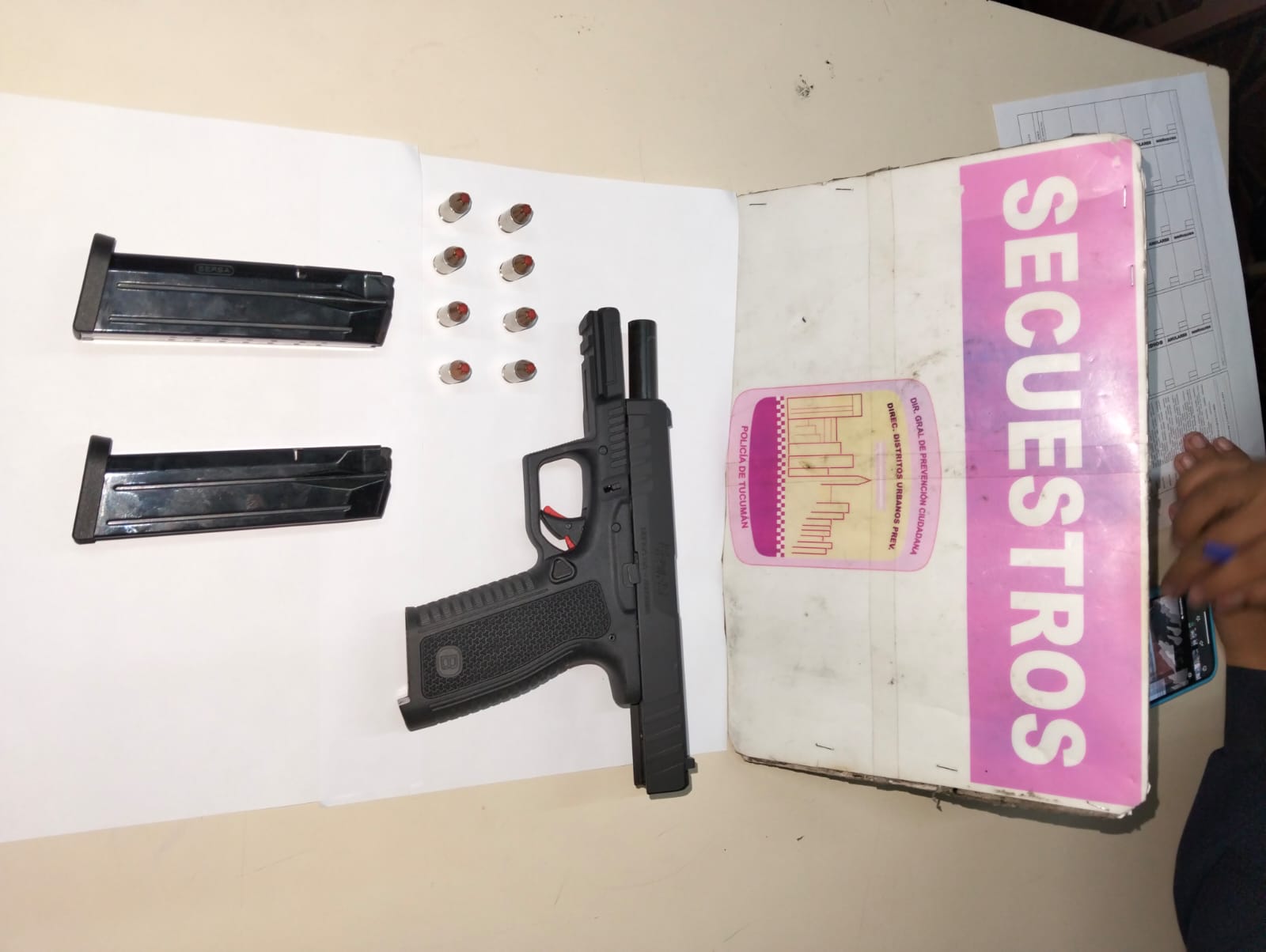 La discusión escaló rápidamente hasta que el acusado extrajo una pistola nueve milímetros y la remontó para intimidarla. El hecho fue observado por efectivos de Distrito Urbano que patrullaban la zona y que intervinieron de inmediato para reducir al agresor.