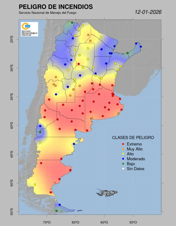 El Servicio Meteorológico Nacional (SMN) y el Servicio Nacional de Manejo del Fuego informaron que para este lunes se redujo el peligro de incendios en la provincia de Chubut, mientras que la labor de los brigadistas, bomberos y voluntarios continúa para extinguir los focos que siguen activos.