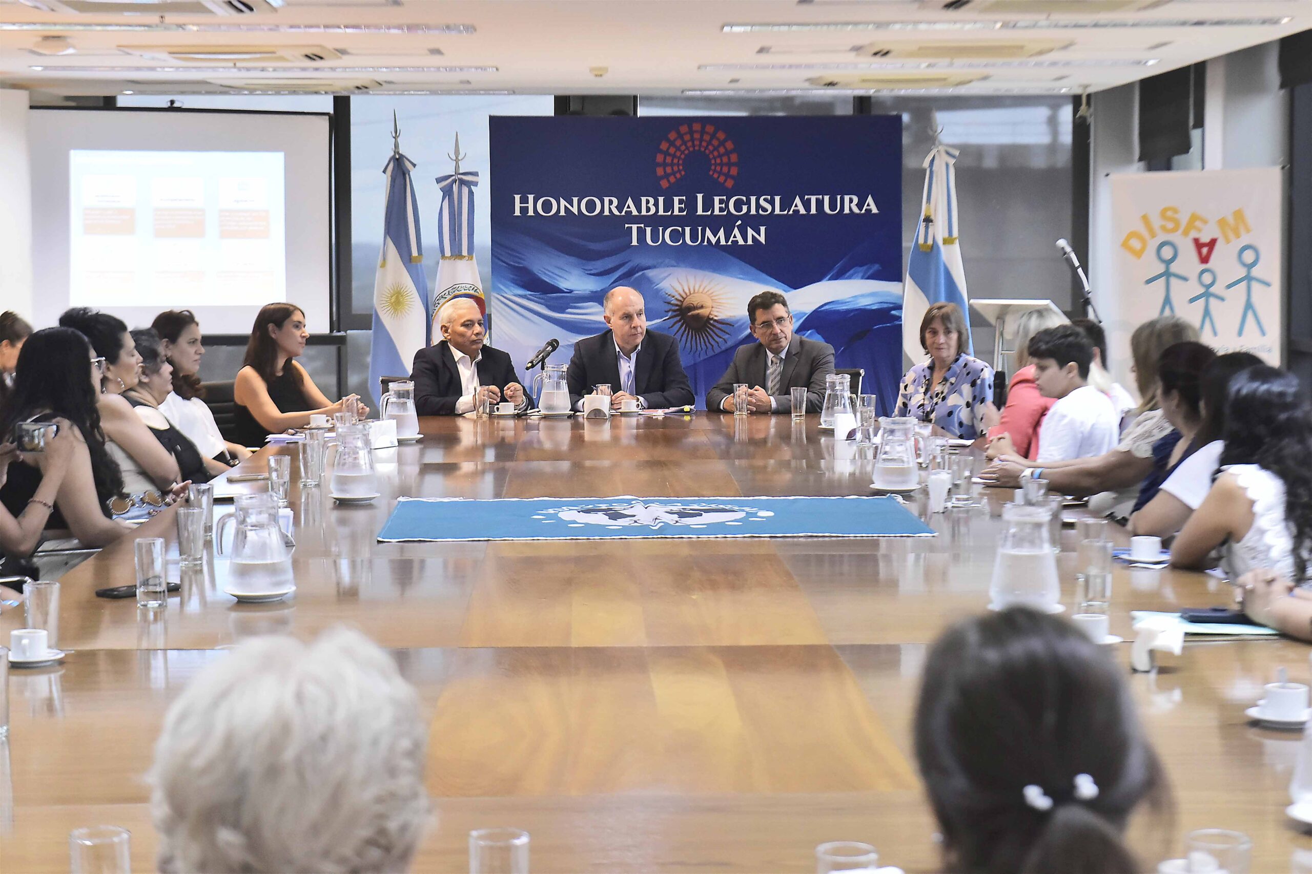 Del encuentro participaron el presidente de la Comisión de Salud, Gabriel Yedlin, los legisladores Claudio Viña y Alfredo Toscano, además de representantes de la Fundación DISFAM (Dislexia y Familia de Tucumán), padres y niños.