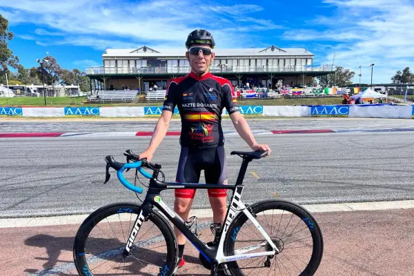 ORGULLO. Parravicini posa con la bandera en los Juegos Mundiales de 2025, en Dresden, Alemania.Pronto se enteró de los Juegos Mundiales de Trasplantados y decidió que esa debía ser su meta para rendirle honores a su donante. Participó en 2021, 2023 y 2025. “Cuando vas ahí tenés la oportunidad de conocer a mucha gente que pasó lo mismo o peores cosas que uno. En lo que todos coinciden es en ese agradecimiento y esa obligación que sienten para con la persona que les salvó la vida”, detalla.
