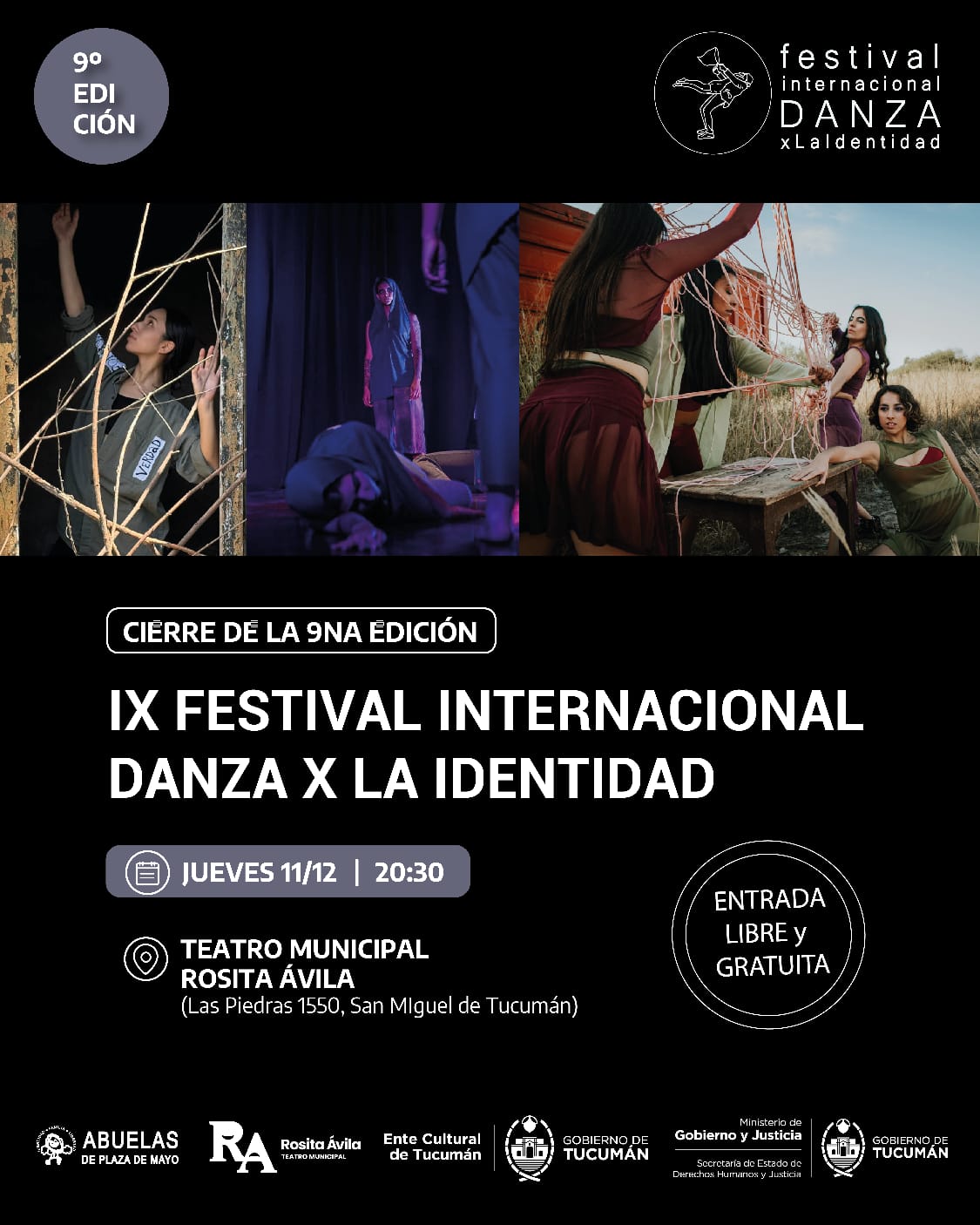 El próximo jueves 11 de diciembre, a las 20.30, el Teatro Municipal Rosita Ávila (Las Piedras 1550) será escenario del IX Festival Internacional “Danza por la Identidad”, una propuesta artística que une movimiento, memoria y compromiso social. La entrada será libre y gratuita, por orden de llegada.