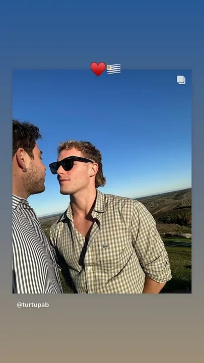 El actor musical utilizó sus redes sociales para publicar una foto de ambos disfrutando de un día soleado en Uruguay, a lo que el conductor de Noche al Dente, la compartió en sus historias de Instagram junto a un emoji de corazón, reconfirmando el vínculo.
