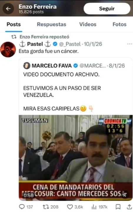 “Su ‘revolución’, sería imposible sin el capitalismo. Me entristece que haya mentes tan limitadas para dejarse llevar por la pasión de ver a un tipo saltando con 50 bailarines pagados en dólares y haciéndose el malo con el país que le da de comer y digan ‘ME REPRESENTA’», cerró el director del medio tucumano.