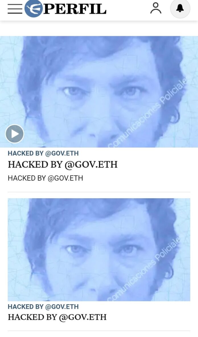 En ese contexto, fue publicada una imagen del documento nacional de identidad del presidente Javier Milei acompañado por un mensaje firmado por el hacker «gov eth» . El mismo hacker fue responsable del ciberataque a la web oficial del gobierno nacional ocurrido el 25 de diciembre de 2024.