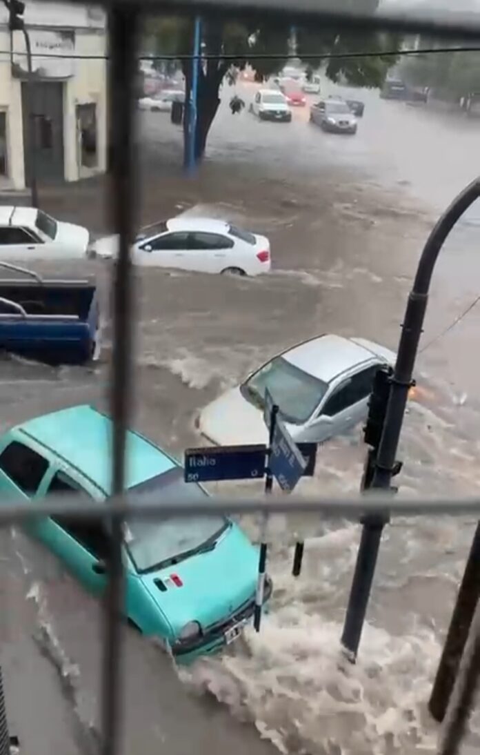 El cruce de avenida Juan B. Justo y calle Italia se convirtió en el epicentro del caos cuando una fuerte correntada, provocada por la intensa lluvia, arrastró varios autos que estaban detenidos en el lugar, dejando postales de desesperación y asombro entre los testigos.