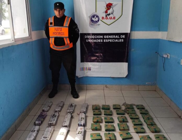 En el control vehicular a un camión de una empresa de encomiendas que provenía de Salta y se dirigía a diferentes provincias del país, los efectivos del Destacamento Cabo Ramón Valentín Jiménez hallaron 17 kilos de hojas de coca en su estado natural.