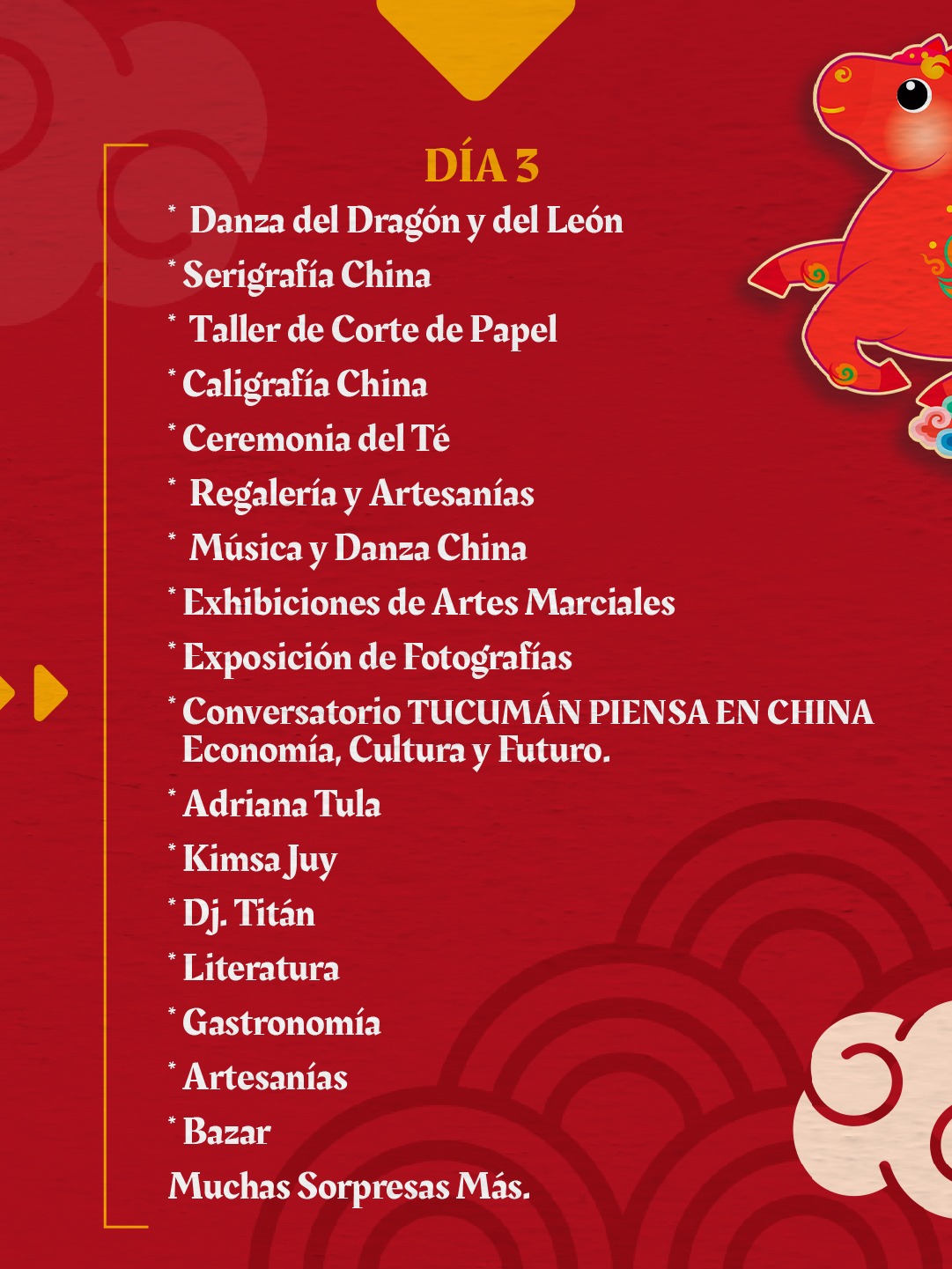 El cierre del evento será una gran celebración cultural bajo el lema “Tafí Viejo celebra el Año Nuevo Chino”, a partir de las 18 horas en el Mercado Municipal.