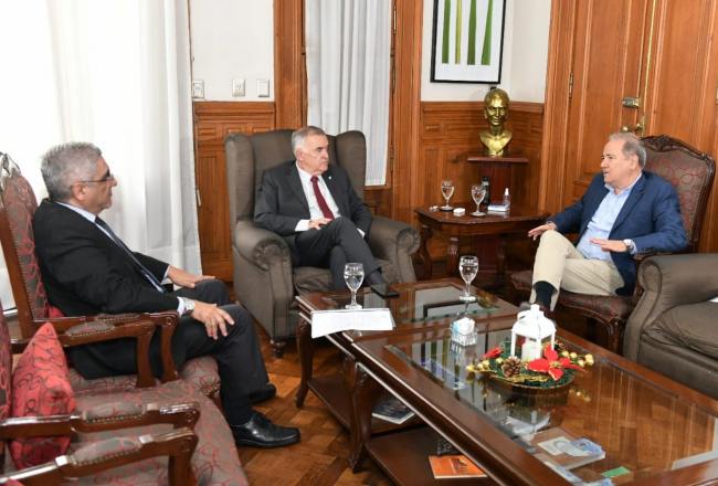El gobernador Osvaldo Jaldo -acompañado por el ministro de Economía y Producción, Daniel Abad, recibió esta mañana en su despacho a Jorge Feijóo, presidente del Centro Azucarero Argentino (CAA), quien le manifestó cierta preocupación sobre las modificaciones al sector azucarero que contempla el proyecto de Ley Omnibus que el gobierno nacional presentó ante el Congreso.