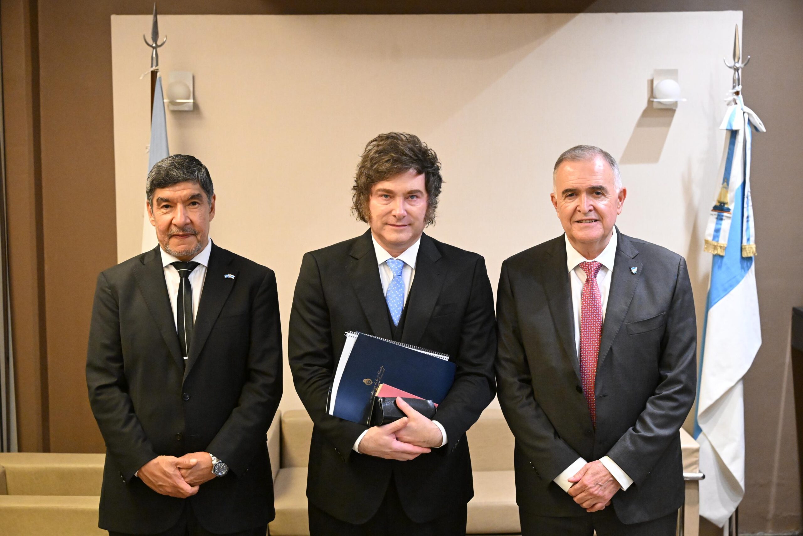 Jaldo estuvo acompañado por el vicegobernador, Miguel Acevedo, mientras que el Presidente llegó acompañado por su hermana Karina Milei, secretaria General de la Presidencia.