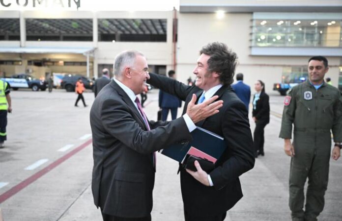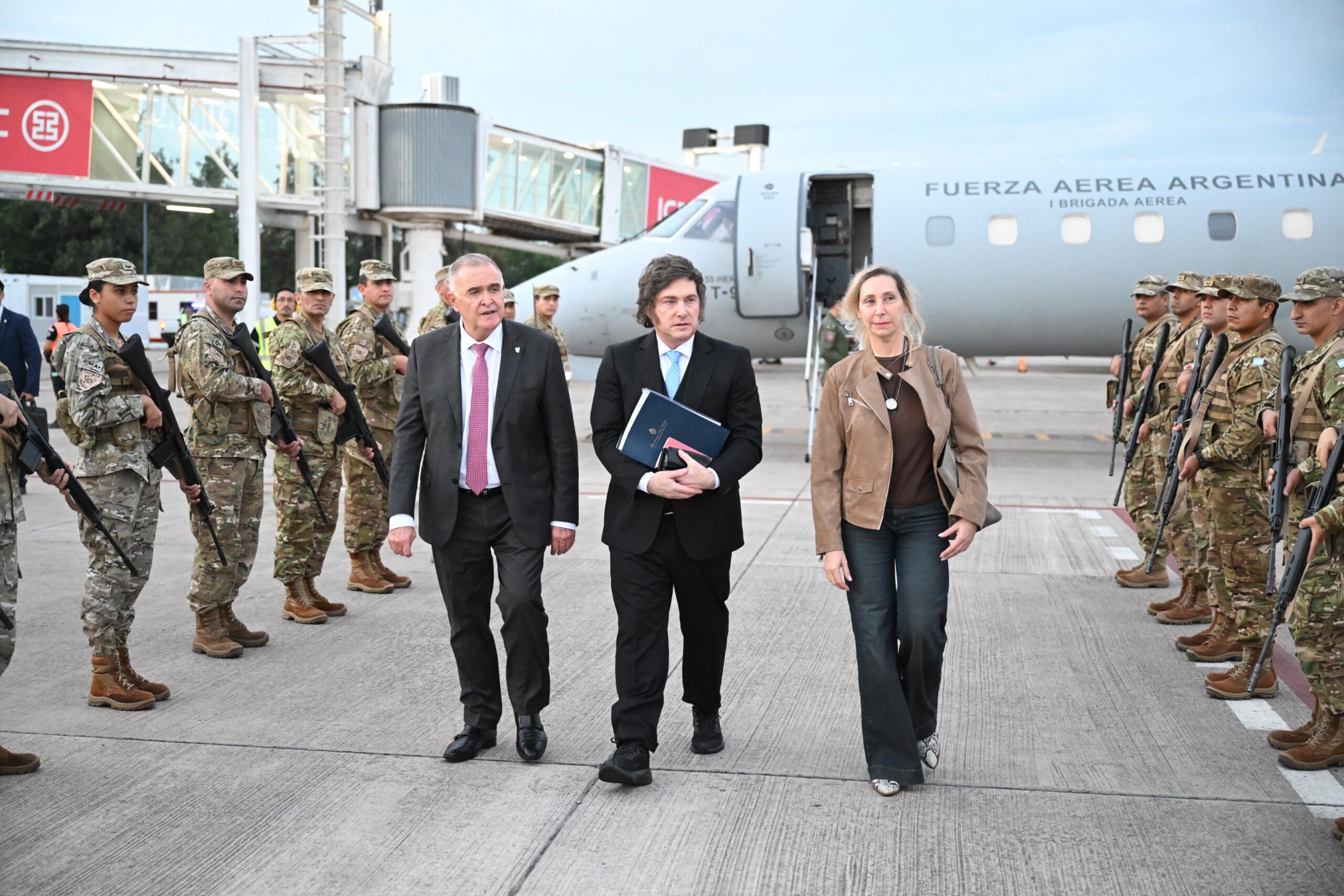 El gobernador Osvaldo Jaldo recibió esta tarde al presidente Javier Milei en el Aeropuerto Internacional Benjamín Matienzo, donde el Gobierno provincial garantizó el recibimiento institucional y las condiciones de seguridad necesarias para el desarrollo de la agenda presidencial.