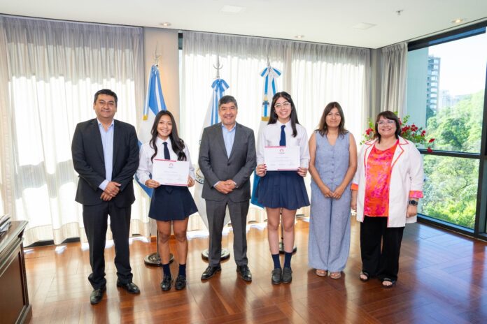 El vicegobernador Miguel Acevedo encabezó el acto de reconocimiento a Malena Carabajal y Sofía Rodríguez, alumnas de la Escuela Técnica N° 1 de La Cocha, quienes obtuvieron el mejor promedio provincial en educación técnica, alcanzando la calificación máxima de diez.