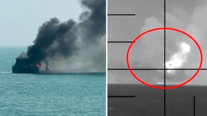 El buque regresaba a su país tras haber participado en una revista naval internacional y en ejercicios militares conjuntos en la ciudad costera de Visakhapatnam, en la vecina India, cuando fue interceptada y destruida.
