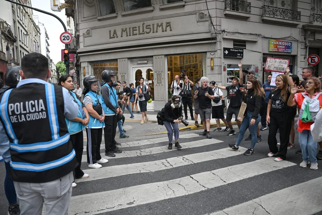 El episodio de represión más encarnizada se produjo a metros de la puerta del Palacio Legislativo, cuando una hilera de efectivos avanzó sobre los manifestantes con gas pimienta y luego los enfrentamientos siguieron cuerpo a cuerpo, con personas que fueron reducidas, arrojadas al piso y golpeadas con las cachiporras en total estado de indefensión.
