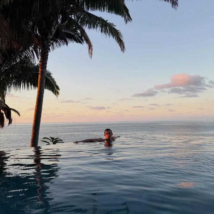 En las paradisíacas postales, se puede observar la presencia de su pareja, quien decidió sumarse al último tramo de la gira para poder cerrar el año juntos en la playa.