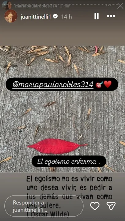 “El egoísmo no es vivir como uno desea vivir, es pedir a los demás que vivan como uno quiere”, escribió la bailarina, que aclaró que se trata de una frase de Oscar Wilde. Fue su hija Juana quien reposteó ese mensaje y le sumó que «el egoísmo enferma».