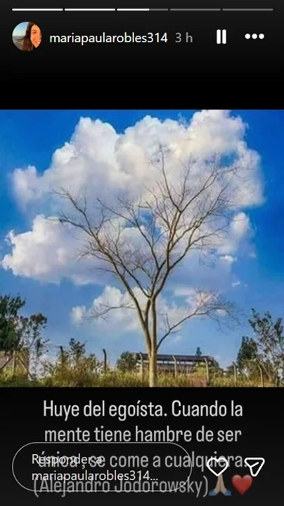 Más tarde eligió otra cita literaria, esta vez de Alejandro Jorodowsky: “Huye del egoísta. Cuando la mente tiene hambre de ser única, se come a cualquiera”.