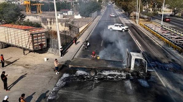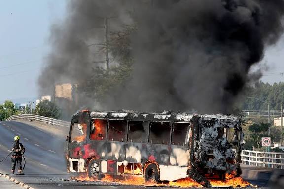 En varios puntos se registraron incendios de camiones de carga y autobuses, utilizados para bloquear carreteras federales y autopistas de cuota. Operadores fueron obligados a descender antes de que las unidades fueran atravesadas e incendiadas.