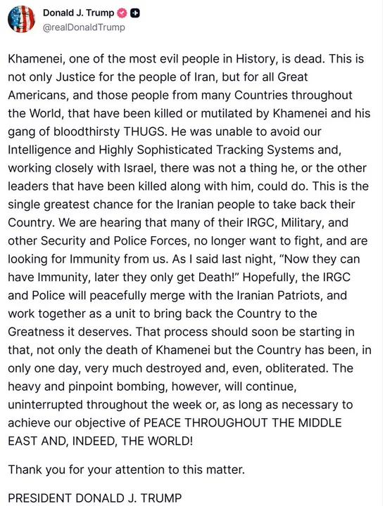 Por otro lado, el presidente estadounidense Donald Trump, junto a medios israelíes, sostiene que el Líder Supremo está muerto.