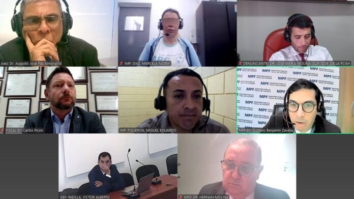 Este viernes 1º de agosto, por pedido del Ministerio Fiscal, se llevó a cabo una audiencia a los fines de exponer un convenio de juicio abreviado rubricado por el fiscal Carlos Picón, titular de la Unidad Fiscal de robos y Hurtos II; los acusados Miguel Eduardo Figueroa (40) y Marcela Noemí Díaz (42); y sus defensores técnicos. Esto en el marco de la causa que investigó las amenazas proferidas al gobernador Osvaldo Jaldo, el juez penal Gonzalo Ortega y los fiscales Carlos Sale, Ignacio López Bustos y Carlos Sale, mediante un audio de WhatsApp, el 16 de marzo de este año.