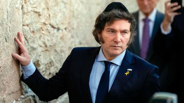 Milei estuvo en Israel en las horas previas en que Benjamin Netananhyu autorizó los ataques hacia objetivos militares de Irán. Tuvo además un episodio tenso con un hombre que cargaba la bandera de Palestina e intentó saltar el vallado para interceptarlo cuando bajaba del auto oficial hacia la Universidad Hebrea de Jerusalén.