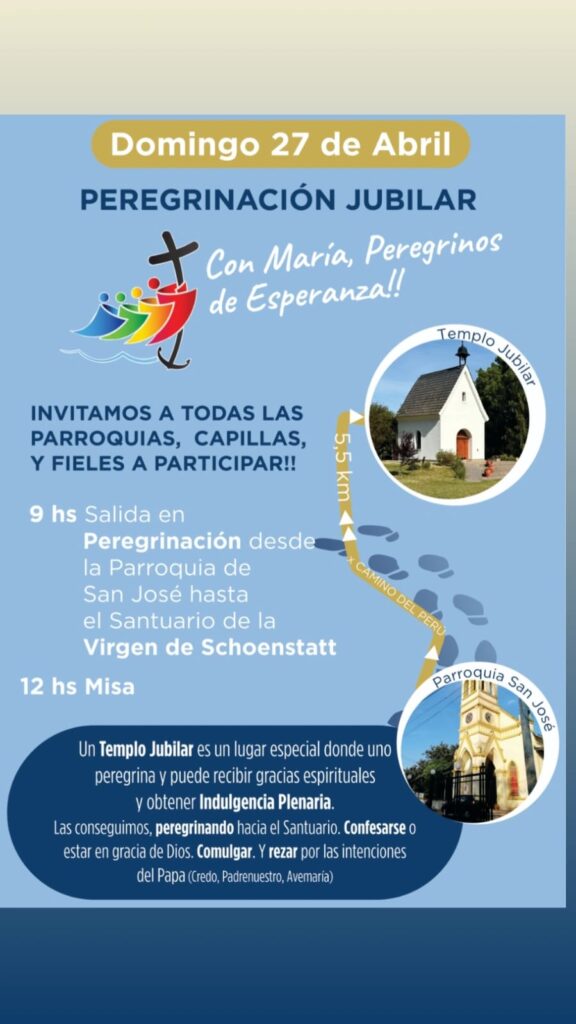 La Pascua del Papa Francisco, que con dolor y gratitud acompañamos, ilumina con su luz de fe y esperanza esta hora de la Iglesia. Siguiendo su llamado en este año jubilar y de sus últimas palabras en la Plaza San Pedro, deseamos juntos peregrinar como signo de esperanza. Un mundo que parece gritar por signos de luz, el próximo domingo 27 de abril, una multitud de corazones se pondrá en marcha hacia un mismo destino: el Santuario de la Virgen de Schoenstatt, “Jardín de María”, en Villa Carmela.