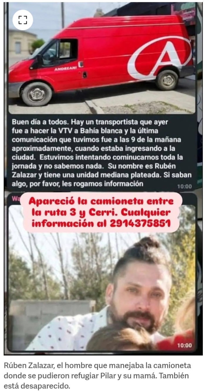 Los familiares siguen buscando a las nenas y al chofer que estaba arriba del vehículo, Rúben Zalazar. El hombre viajaba desde Viedma hasta Bahía Blanca en un rodado de la reconocida empresa de correos, pero quedó varado durante el temporal en la zona de “El Cholo”.