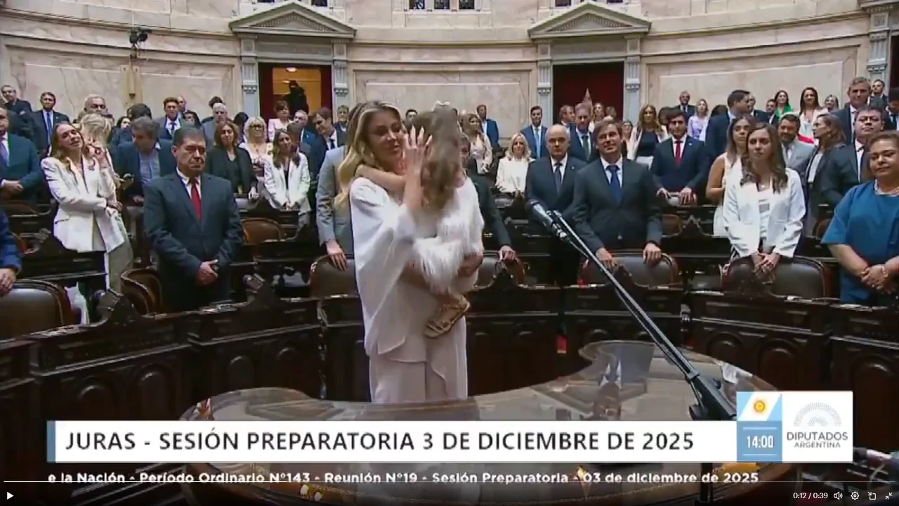 Durante la ceremonia de este miércoles a las 13, donde prestaron juramento los 127 nuevos legisladores que renovarán la mitad de la Cámara de Diputados, Gallardo sorprendió al pronunciar su compromiso con su hija en brazos.